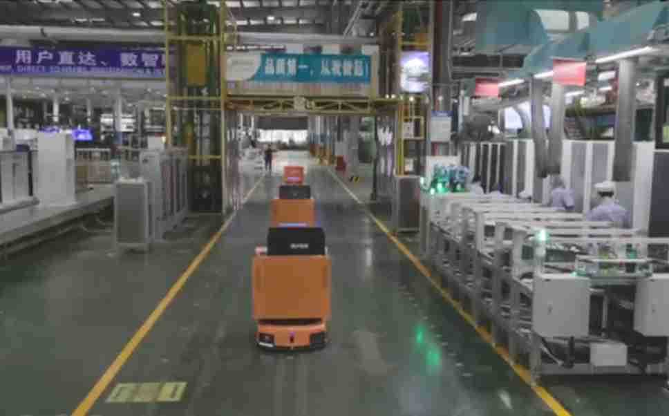 为车载冰箱物流配送打造的智能解决方案,,,包含产中物流通过潜伏举升AMR搬运至线边,,产后成品物流智能仓储,,,流程包含产中物流智能齐套入库,,线边安灯叫料AMR智能配送至线边,,,成品入库、、、出库,,,,通过无人堆高车机器人,,,,智能仓储管理替代人工作业管理,,,,实现更高存储、、更高效率、、、更具柔性化的解决方案。。